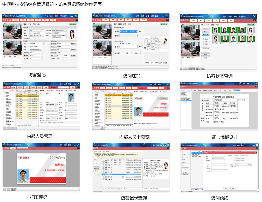 中振科技訪客登記管理系統(tǒng),支持身份驗證,身份證自動閱讀及登記、對各種證件進(jìn)行掃描錄入、對來訪人拍照以及對訪客發(fā)放進(jìn)出門,能高效記錄訪客的證件信息,出入圖像信息及來訪信息,并能靈活的查詢及管理來訪歷史資料,可極大提高前臺和門衛(wèi)的工作效率, 僅需要30秒就可實現(xiàn)對一個來客登記流程,適用于政府機關(guān)、事業(yè)單位、高檔寫字樓、部隊大院、住宅小區(qū)等。